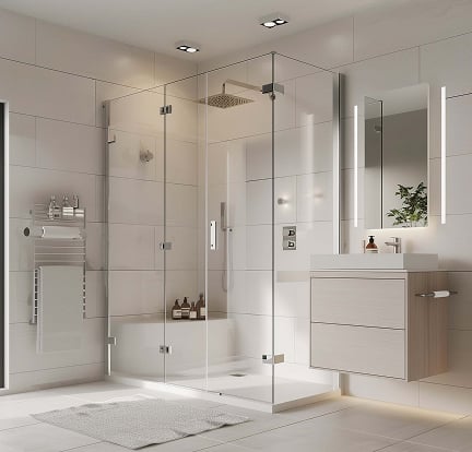 Our shower partitions and glass fitouts are built using advanced materials from TPRS and MODWEL. TPRS brings over 25 years of expertise in premium architectural glass—tempered, laminated, frosted, insulated, and digitally printed options. MODWEL offers design-focused glass solutions optimized for privacy, safety, energy efficiency, and aesthetic appeal.